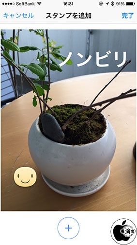 FacebookのiOSアプリ「Facebook」で写真を投稿する場合、テキスト文字や、スタンプなどを追加することが可能になっています。