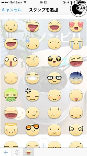 デフォルトではミープだけが表示されますが、左下の+ボタンからスタンプを追加することが出来ます。