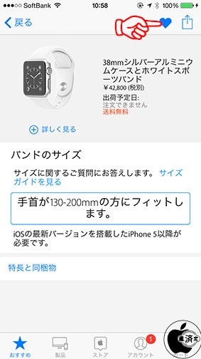 Apple.com/jpで、Apple Watchを予約注文する場合、お気に入り登録が便利