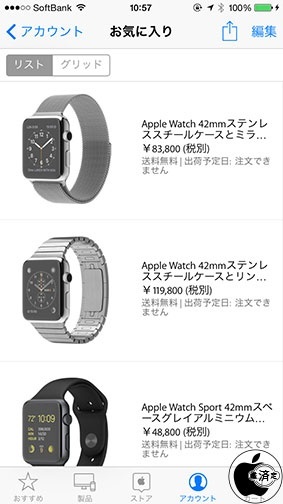 実際に予約開始になった場合、Apple Online Storeまたは、Apple Storeアプリのアカウント>お気に入りから、予め登録したApple Watchを、素早く購入することが可能になります。
