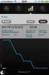 Shareボタンをタップすると、Facebook、Twitter、RunKeeper、MapMyFitnessなどに投稿することが出来ます。