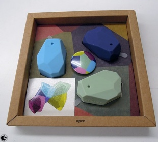 本体は、カラフルな石のようなシリコンケースで包まれていて、中には、32ビットの「ARM Cortex-M0」と256KBフラッシュ、Bluetooth LE通信モジュールが入っていると説明されています。
