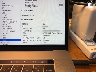 Apple 87W USB-C電源アダプタにUSB3-CC5PNBKシリーズを接続し、MacBook Pro (15-inch, Late 2016)の充電を行った場合86W(20.2V/4.3A)充電が可能です。