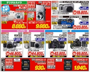デジタルカメラの項目を見てみると、今週は、OLYMPUS STYLUS VH-515、IXY 90Fなど決して価格.comの売れ筋ランキングの上位機種ではない商品が掲載されていますが、ヤマダ電機全体の店舗数を考えると、相当量の在庫が積まれていることが予測出来ます。この押し出しされている商品情報を元に価格を調べて紹介したり、レビューしたりすると、チラシを見て気になった人にはヒットする確立は上がるはずです。その数は口コミマーケティングとは比べられるレベルではありません。