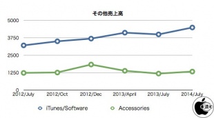 その他のiTunesとソフトウェアの売上は昨年同期よりも12%増となっています。