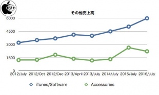 その他のiTunesとソフトウェアの売上は、AppleCareやApple Payライセンス料金などが含まれる「Services」という形式に変わっています。