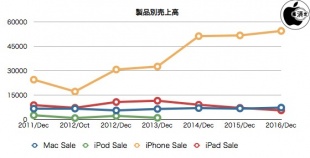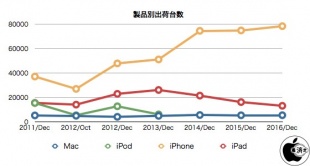 過去の同四半期と比較すると、Macintoshの場合、売上高は昨年同期と比べて7%増となり、MacBook Pro (Late 2016) が好調だったことを伺わせます。