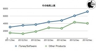 その他のiTunesとソフトウェアの売上は、AppleCareやApple Payライセンス料金などが含まれる「Services」という形式に変わっています。