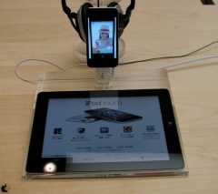 この横に置かれたiPad 2は、Mac/iPod/iPadの各ジャンル分けされたテーブル毎に、それぞれのジャンル製品情報を表示する仕組みとなっています。