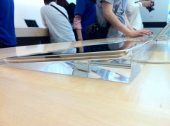 Apple Storeが、これまでMacやiPod touch/iPadの横に置かれていた価格表示パネルを、紙によるものから、iPad 2を使用したデジタルディスプレイ方式に変更を行っていました。