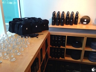 Apple Company Storeは、ロゴグッズだけでなく、Apple Retail Store同様にアクセサリー類も販売されていますが、手前の棚が全てApple純正アクセサリーに変わっていました。