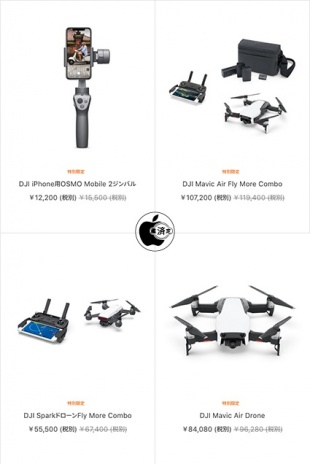 Apple公式ストア、DJIのドローンやスタビライザーなどを最大21%オフで販売する特別限定販売を実施