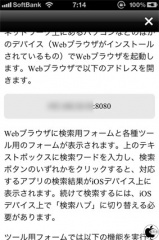 検索ハブアプリの「i」をタップし、Webブラウザから開くアドレス情報を確認します。