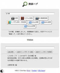Unit Kayが、iPhone/iPod touch/iPad用辞書ユーティリティアプリ「検索ハブ」を、App Storeにて販売を開始していたので試してみました。