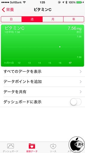 iOS 8の「ヘルスケア」は、カルシウム、たんぱく質、ビタミン群など、細かい栄養摂取状況を記録することが出来ます。