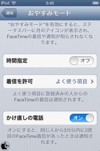 iOS 6:指定した時間内に特定の着信のみ受け付ける「「おやすみモード」を利用する