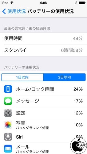 iOS 8:各アプリのバッテリー使用状況が確認可能に