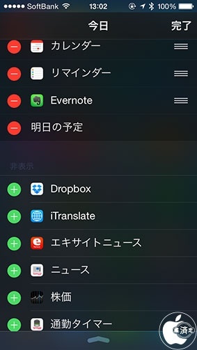 iOS 8:通知センターに様々なアプリの機能を追加出来る「ウィジェット」の使い方
