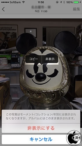 iOS 8:特定の写真を保存はしておきたいが表示したくない写真を隠せる「非表示」が可能に