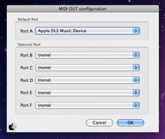 アプリを起動したら、最初にFinderメニュー>Option>MIDI OUTを選び、サウンド出力ポートの設定を行います。