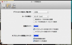ルーラの設定では、デフォルトの拡大比率、ルーラの単位(cm、ptなど)、オブジェクトの配置位置、オブジェクトの間隔とサイズを相対とするか否かも設定することが出来ます。
