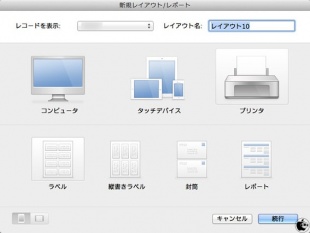 一番変わった点は、新規レイアウト/レポート画面で、コンピュータ、タッチデバイス、プリンタというサイズ指定のデザインレイアウトが選択出来るようになったことです。