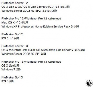必要システム環境が、1グレードアップし、FileMaker Pro 13ではMac OS X Snow Leopardの対応は無くなりました。