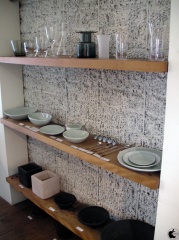 お店には、晋さんが独立してから手掛けたアイデックの「Table TRIS」「KAKU」「KOLA」などが置かれ、食器類は、「ring ring」とか、色々なデザイナーのプロダクトが使われています。