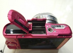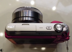 トップの電源レバーのオン/オフレバー位置が、NEX-3では手前に配置されていたのに対し、NEX-C3では、右サイド側に変更されています。