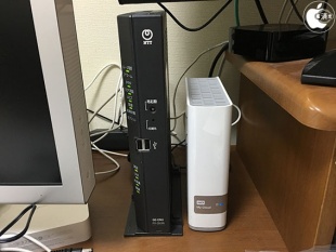 ホームゲートウェイ「PR-500MI」のEthernetポートに接続して使用するため、すぐ横にWD Cloudを設置しました。
