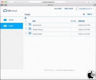 この時のアクセスは「http://wdcloud.jp」で「afp://x.x.x.x」「smb://x.x.x.x」などを使ったアクセスではありません。