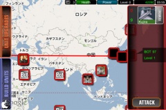 赤いマスをタップして、攻撃する相手を選択し、戦闘機をタップして、敵基地を攻撃する戦闘機の数を決め、ATTACKボタンをタップすると出撃します。