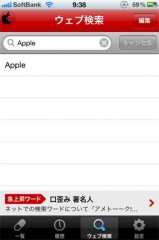 ウェブ検索をタップして、キーワード入力エリアにキーワードを入力してYahoo!検索を行う事が出来ます。