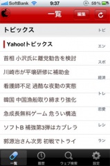 アプリを起動すると、Yahoo!天気情報、Yahoo!占い、Yahoo!ニュース - トピックス、検索急上昇の人物、ネタりか、Yahoo!ファイナンス(日経平均株価)、Yahoo! FASHION(ファッションスナップ)、Yahoo!知恵袋(恋愛相談カテゴリ)、Yahoo!グルメ(今日のお献立)、Yahoo!グルメ - レシピ情報(アクセスランキング)、Yahoo!映画(興行成績ランキング)、Yahoo!ショッピング - 売れ筋商品ランキング(総合/邦楽/洋楽/DVD/本) などなどの更新情報が一覧表示されます。