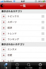 一覧の編集ボタンをタップすると、表示されるジャンル項目のカスタマイズを行う事が出来ます。