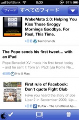 アカウントを設定してRSSアイコンをタップすると、記事が読み込まれます。