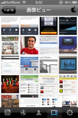 テレビアイコンをタップすると、記事中の画像がタイル表示され、写真から記事を読む事も出来ます。