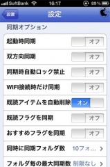 設定は、かなり項目が多く、Googleリーダーとの同期方法や、既読同期設定、キャッシュ設定、Webアーカイブ設定など色々と用意されています。