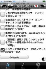 asahi.com、IT media、毎日jp等のRSSニュースを読むリーダーアプリですが、読みたい記事をチェックして、一番下のGenerateボタンを押すと、見やすくレイアウトを修正して表示してくれます。