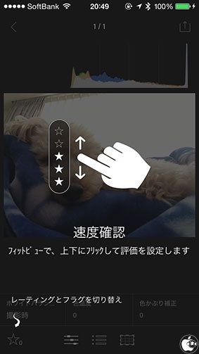 フィットビューで、上下にフリックすると、写真に評価を付ける事が出来ます。