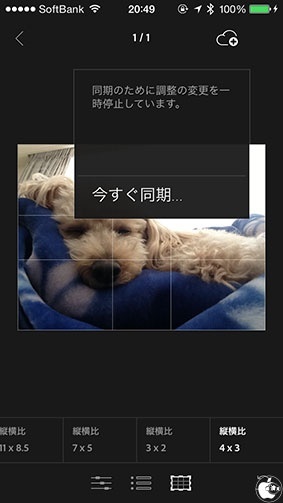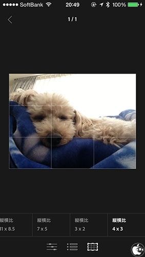 右端のアイコンをタップすると、切り抜き編集が行え、グリッドが表示されます。