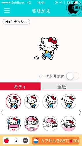 そのりんごを使ってカプセルを引けば、より可愛い壁紙やハローキティのアニメーションを手に入れることができます。