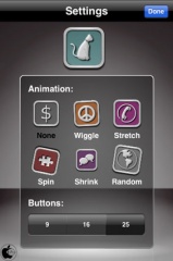 設定画面では、アイコン数を、9個、16個、25個に変更することができ、アイコンに動きをつけることもできます。