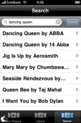 検索では、iPodに入っていない楽曲を検索して、歌詞情報を引っ張ってくることも出来ます。