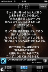 Libraryタプをタップして、iPodのプレイリストから楽曲を選び、ネット上から歌詞だけを表示させることも出来ます。