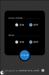 画面をタップすると設定画面が表示され、スリープのオン/オフや、日付表示のオン/オフを行なうことが出来るようになっています。