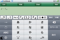 通常のキーボタンの上に、拡張文字/記号入力を容易にする専用キーが表示され、メール本文を作成するアプリです。
