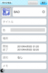 右上のプラスボタンをタップすると、カレンダー情報の入力を行う事が出来ます。