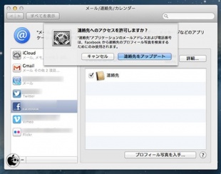 OS X Mountain LionのFacebook機能の使い方(連絡先/カレンダー)