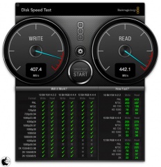 Write 407MB/s、Read 442MB/sという高速SSDドライブ並みの結果が出ました。